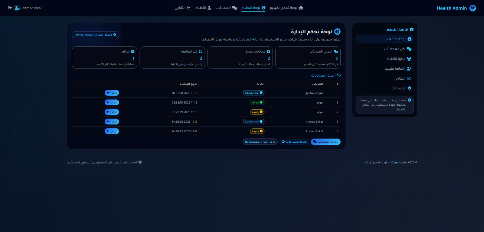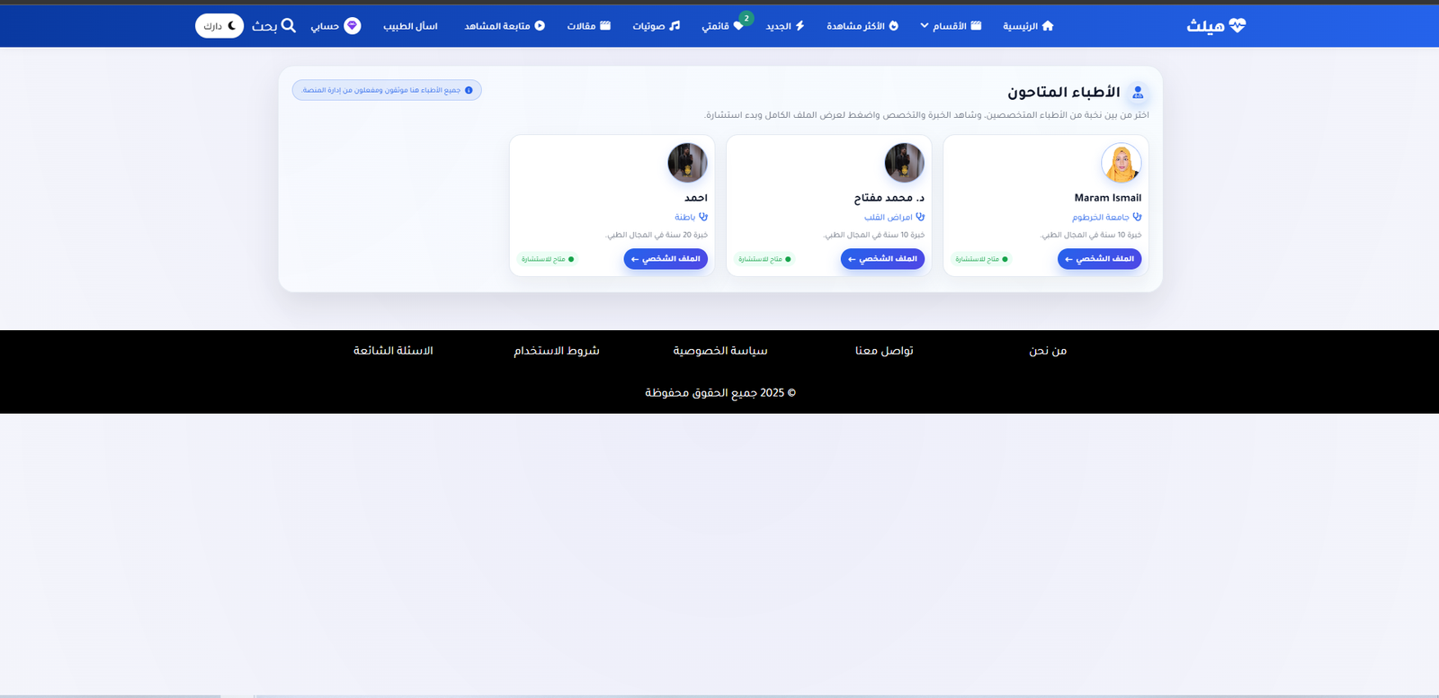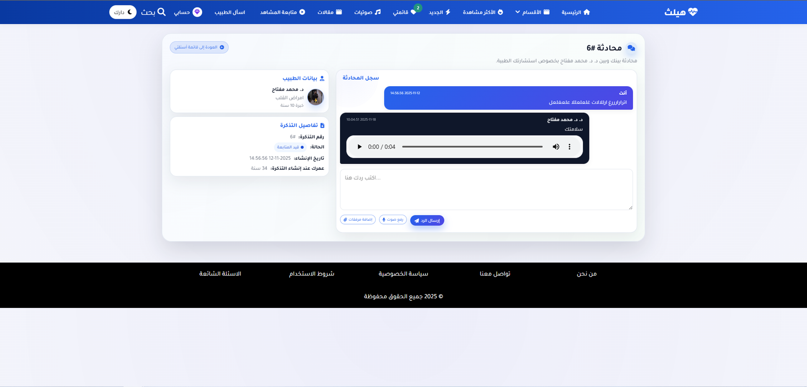 المنصة هي منصة طبية و تم اضافة شات حي بها حتي يتمكن المريض من طلب استشارة من الاطباء المتاحين