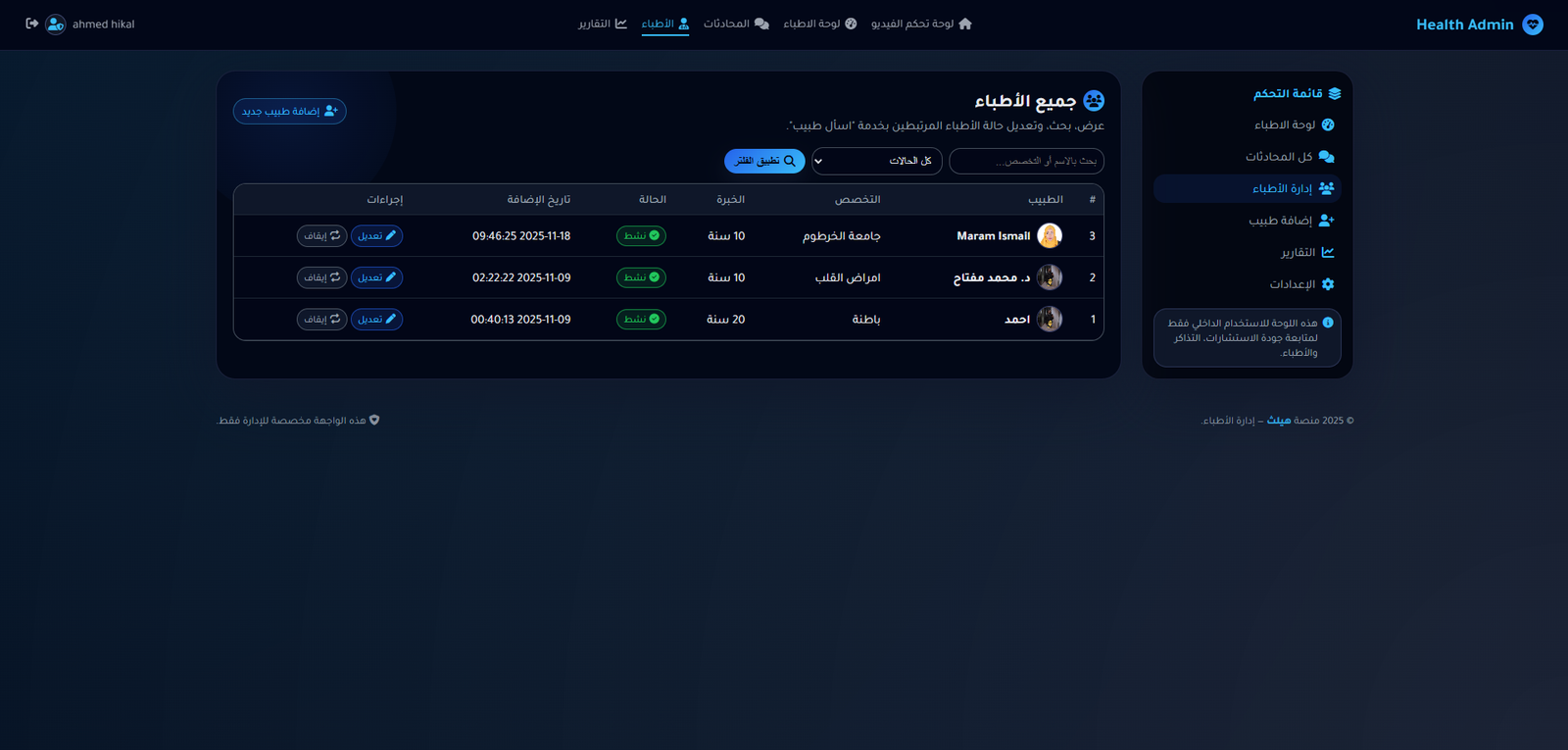 المنصة هي منصة طبية و تم اضافة شات حي بها حتي يتمكن المريض من طلب استشارة من الاطباء المتاحين